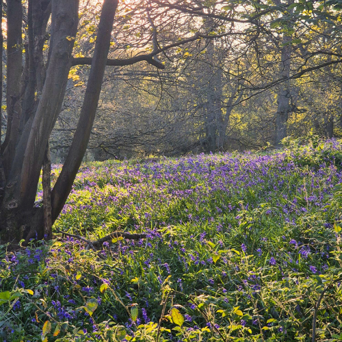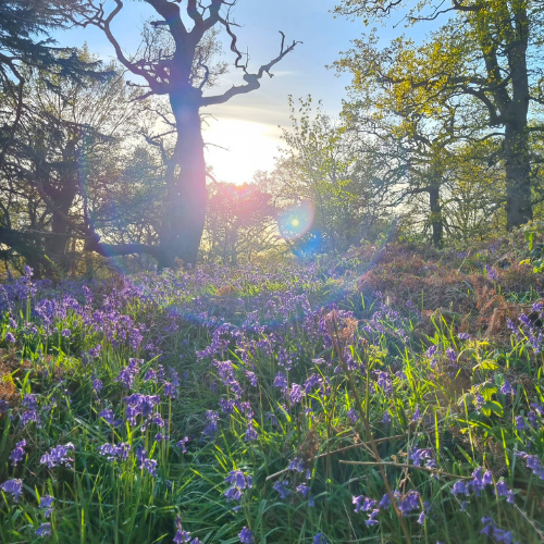 An evening's sundowner walk to admire the carpets of bluebells in the beautiful Burley Wood.